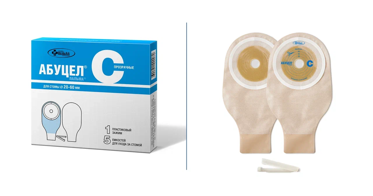 У калоприёмников АБУЦЕЛ-С наружная сторона ёмкостей выполнена из прозрачной бесцветной полимерной плёнки, что позволяет контролировать содержимое. Внутренняя, обращенная к телу сторона ёмкости снабжена мягкой подкладкой из нетканого материала.