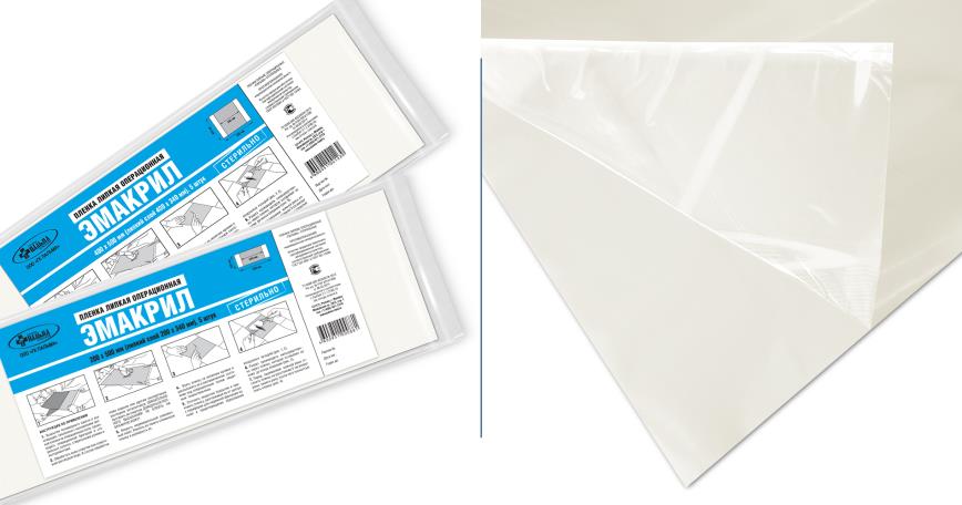 Липкая операционная плёнка накладывается на операционное поле после обычной предоперационной подготовки. Обрабатывать кожу необходимо спиртом или спиртовым раствором йода. Плёнка ЭМАКРИЛ состоит их двух слоев – липкая операционная плёнка и антиадгезионная бумага. В процессе наложения плёнки на кожу антиадгезионная бумага снимается. Разрез проводится непосредственно через плёнку, которая остается на коже до конца операции. Выпускаемые операционные плёнки ЭМАКРИЛ имеют размер липкого поля 340 х 400 мм (общий размер, с учетом нелипких кромок 500 х 400 мм) или 340 х 200 мм (общий размер, с учетом нелипких кромок 500 х 200 мм).