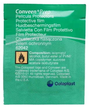 Защитная пленка в салфетках «Преп» используются для ухода за кожей перед применением самоклеящегося уропрезерватива или перед приклеиванием адгезивной пластины калоприемника и уроприемника.