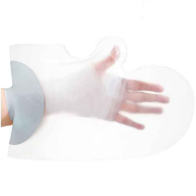 Чехол используется для защиты кисти руки от влаги во время приема водных процедур. Материал чехла — ПВХ, материал кольца для надевания — силикон.