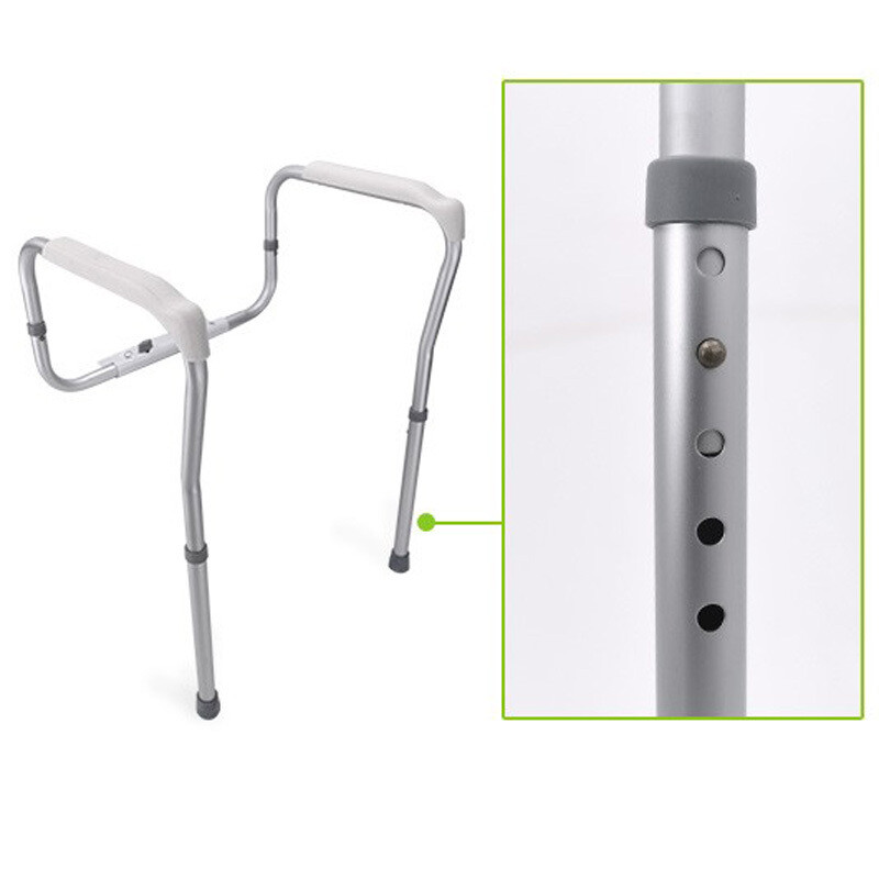 Поручень облегчает использование туалета людям с инвалидностью, людям с нарушениями опорно-двигательного аппарата, а также проходящих реабилитацию после травм. Крепится к унитазу; регулируется по высоте и ширине. Конструкция выполнена из анодированного алюминий.